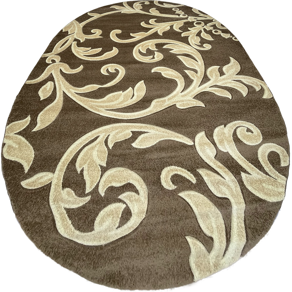 Килим виконаний у неяскравих, сучасних відтінках бежево-коричневих кольорів, що створює теплу та спокійну атмосферу в кімнаті.