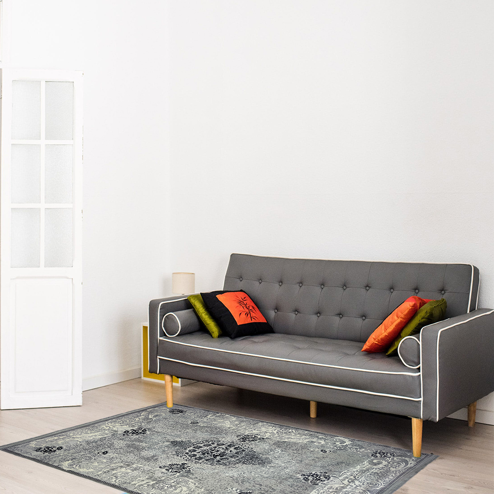 Колірна гамма килима виконана в стриманих бежево-сірих відтінках, що додають йому особливого шарму.